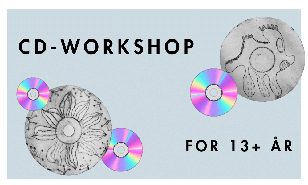 Vi arbejder med en sjov og anderledes trykketeknik, hvor vi ridser motiver direkte i plastikoverfladen og trykker dem på fugtigt akvarelpapir i en trykpresse. CD’ens runde form giver et helt særligt og smukt grafisk udtryk.